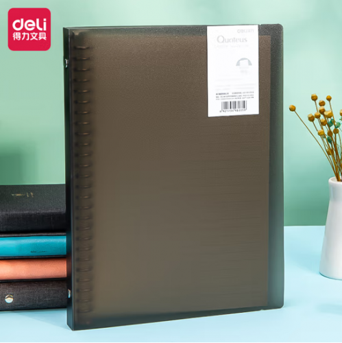 得力(deli)A4两孔D型透明文件夹 活页打孔文件夹资料夹子 文件收纳办公用品5381