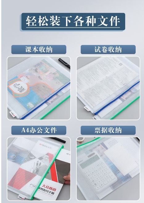 晨光 A4文件袋 透明档案袋 网格袋 拉链防水收纳袋 混色随机 ADM94506
