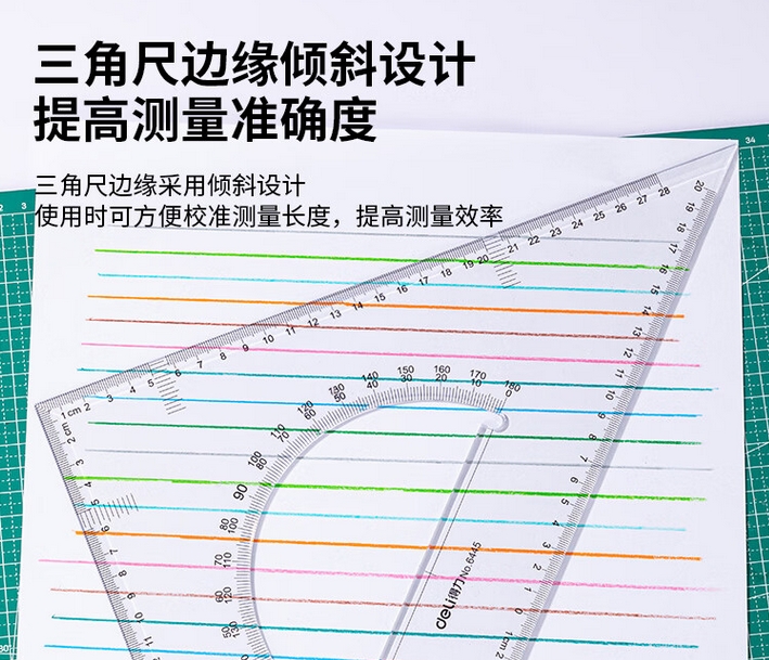 得力(deli)43cm三角板2件套 教学透明塑料三角尺 制图三角板 大绘图三角板尺子套装 学生文具 6445