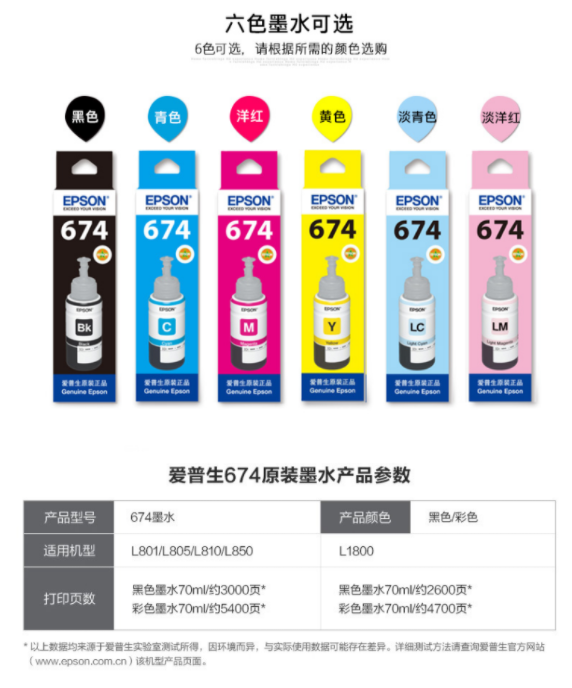 爱普生(EPSON)T6746 浅洋红色原装墨水(适用于L801/L805/L810/L850/L1800)