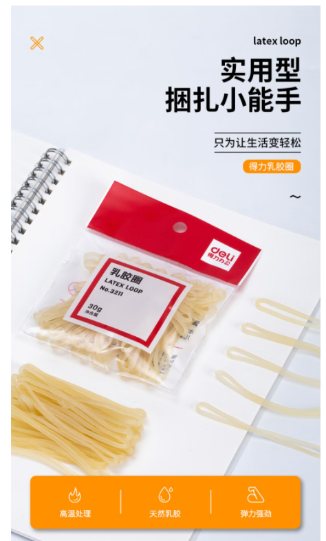 得力3211乳胶圈(微黄)(30g/包)