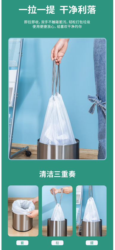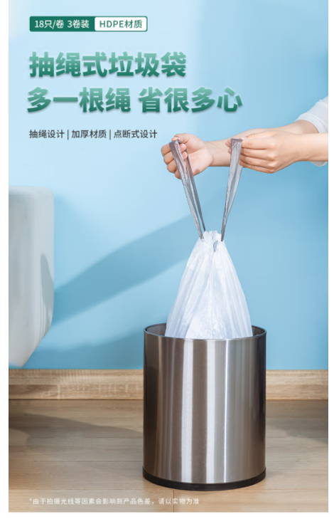 得力18751抽绳白色垃圾袋(45*50cm)(3卷装)(18只/卷)