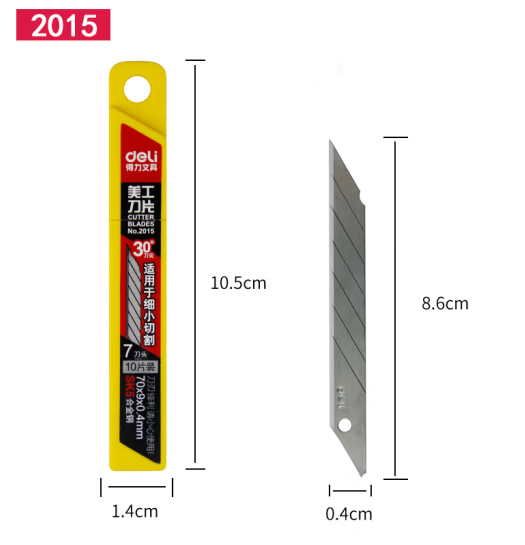 美工刀片 得力(deli) 高碳钢美工刀片大小号 刃口锋利 SK5 9mm宽 30°角 5盒 2015